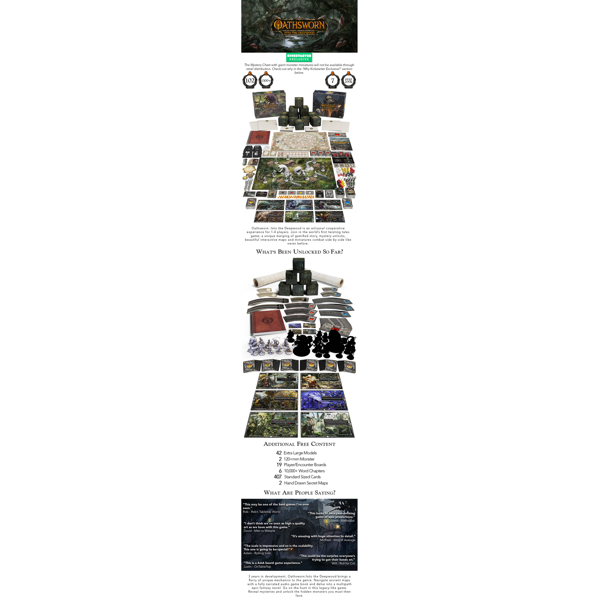 The Ultimate Package including all available content for Oathsworn: Into the Deepwood. You will receive one copy of The Base Game, The Mystery Chest, The Terrain Pack, The Armory Box, The Hardback Artbook, The Map Pack, The Metal Coins and All Unlocked Stretch Goals.